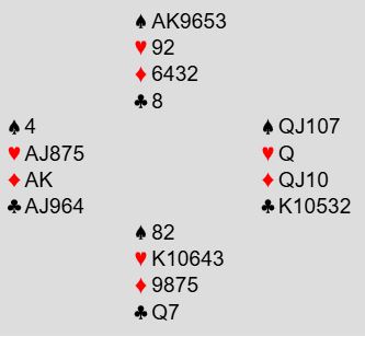Litt snodig, det ble altså massevis unødvendig tenking om enten å sikre kontrakten, eller om det burde satses på overstikk via en sprek finesse. Men sekunder senere er tolv (!) stikk innkassert uten å gjøre noe særlig annet enn å spille alle fargene fra topp...