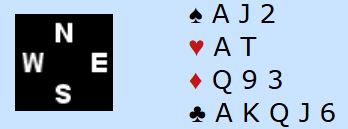 Nord er giver og passer. Jeg oppvurderte dette til 22-24NT og åpnet med 2 kløver. Du får spille en kontrakt, men hva slags type kontrakt tror du du kommer til å havne i? Spørsmålet er kanskje rart, men svaret er nemlig at det blir å spille en kontrakt som i teorien er en stamp!
