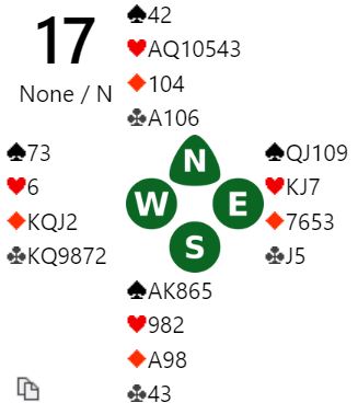Å si 3 hjerter er vel det normale, men det går godt an å tenke på pass også med 1,5 trumfstikk bak kløvermelderen, og ett ess. Kalita (nord) passet på 3 kløver doblet, og det ble bra siden syd hadde såpass fine motspillsverdier.