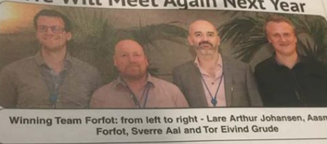 På Madeira har den årlige bridgefestivalen nettopp blitt arrangert. I lagturneringen ble det en meget sterk seier til et norsk lag blant 97 deltagende lag. På vinnerlaget spilte Aasmund Forfot, Lars Arthur Johansen, Sverra Johan Aal og Tor Evind Grude.