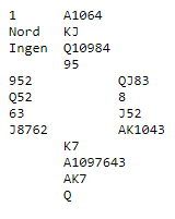 N/S har en sparkontrakt, og Ø/V kan vel vinne et par hjerter. På listen over scorene på dette spillet fra 1. og 2.divisjon samlet var det noen få hjerterkontrakter, de fleste 3 hjerter med en bet, noen svært få scorer Ø/V for vunnede hjerterkontrakter, men ellers var det sparkontakter N/S over alt.