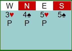 Vest åpner med 3 hjerter, og makker melder inn 4 spar.