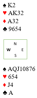 Planen bør være å utnytte hjerterfargen. Det er klart at om hjerterfargen sitter 4-3 bør det være grei sak å vinne slem her, og med litt god timing er det med snill hjertersits muligheter for tretten stikk om ruter konge sitter i saksen i tillegg.