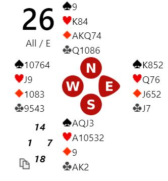 LUNDBERG slo VINCIGUERRA ganske klart, mye takket være to gode slemmeldinger av Zia -Helgemo. Riktignok meldte de fleste begge de slemmene, men ikke det franske paret som satt i den retningen. Her er en av 6 hjerter som kunne vært litt interessant i spilleføringen: