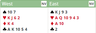En på østs plass fikk kun elleve stikk i 4 hjerter og noterte bare noen strøpoeng mer enn de som gikk bet i slem.