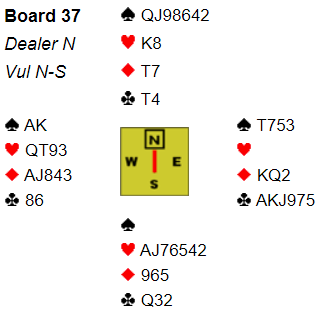 Det var altså en nokså dagligdags variant med det utspillet, slemmen vinnes - dog litt heldig. Det så ikke så galt ut for forsvaret med spar ut som kunne trumfes av makkeren i en slem, men det gjorde det på en måte enklere for spillefører. Han som spilte ut spar dame undret imidlertid på hvordan 6 ruter kan vinnes med hjerter konge i utspill. Det var utspillet han hadde tenkt på.