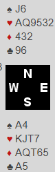 Øst spiller ut spar konge til esset. Det er fire mulige tapere: en i kløver, en i spar og to i ruter om vest har både knekten og kongen i ruter. Men det kan godt være overstikk hvis ruterfargen kan godspilles.