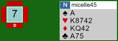 Mange dobler automatisk med slike kort, selv på et lavt meldetrinn. Jeg mener å melde inn er klart bedre, spesielt på et lavt meldetrinn. Av de som er enige i det vil mange av dem doble når meldingene starter høyt da det kan bli feil å si 3 hjerter om det går pass rundt og makker for eksempel har en singelton hjerter. Det føles kanskje litt tryggere å doble opplysende, og hvis de blir spillende 3 hjerter kan det selvsagt godt hende de har en mye bedre kontrakt i en av de andre fargene.