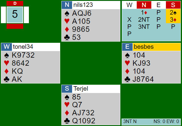 Kvangraven meldte sprekt 3 grand vel vitende at syd ikke hadde all verdens med kort.