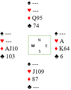 Siden øst har ruter konge kan Ø/V ta alle de siste stikkene med tre ruterstikk. Men Nicolai så at de kunne få resten selv om han tok høyde for at nord kunne ha ruter konge, så han kastet ruter 10. For nå ble nord skviset sønder og sammen! På hjerter ess måtte han enten gi opp kløveren, eller gå ned på ruter dame dobbel. Han kastet en ruter og igjen satt med Q-9 dobbel. Men da to Ø/V resten med ett kløverstikk og tre ruterstikk, det siste til østs ruter 6. Tre bet ga en score oppunder mønet for det norske paret, og forskjellen på +100 og +150 til Ø/V var stor - et typisk parturneringsspill.