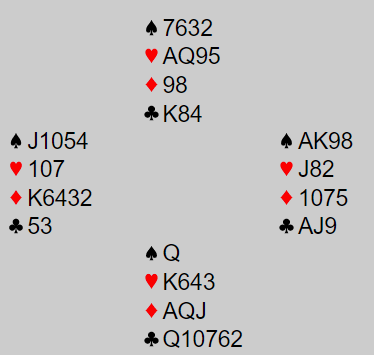 Her er et spill fra den pågående turneringen RealBridge Online Lag.