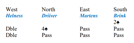Syd åpnet altså med 2 spar med det samme, og Tor doblet opplysende. Etter nords 4 spar som godt kan være en ren sperremelding doblet nordmannen igjen, og ingen hadde noe å tilføye. Før utspillet gjorde imidlertid Tor noen fornuftige betraktninger: