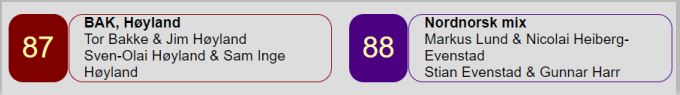 1 IMP vinnermargin, og det skjedde etter at Nordnorsk Mix vant 1 IMP i det siste spillet hvor Nicolai Heiberg-Evenstad fikk overtikk i 1NT hvor det kun var syv stikk og ble syv stikk ved det andre bordet. Jeg har blitt fortalt at om det hadde blitt uavgjort 87-87 ville totalscore avgjort, og den så slik ut: 18110 - 18050 i favør BAK!