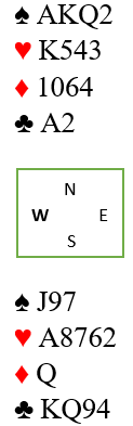Det kan imidlertid bli litt farlig i andre meldesekvenser hvor det er litt mer uklart og kanskje spar er meldt naturlig underveis. Det blir ikke særlig bra om han ene passer fordi han tror 4 spar er forslag til kontrakt, og han andre mente det var Key Card med hjerter som trumf. Eller motsatt! Derfor må det for sånne sekvenser diskuteres hvor grensen går og i hvilke tilfeller 4 spar er naturlig. Litt skummelt…