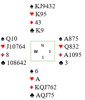 Det kan ikke bli feil hvis nord har benektet en maks 2 svake 2 åpning. Og svaret 3 hjerter på syds spørsmål 2 grand viste minimum med spar. Men hvis nord kunne hatt en maks svake 2 med spar kunne kanskje spillet sett slik ut: