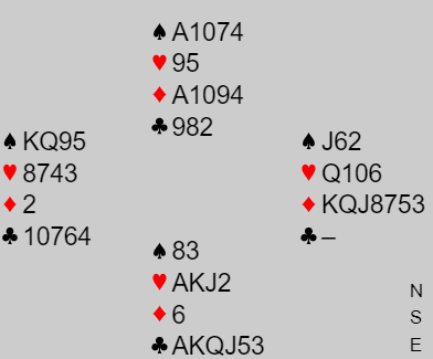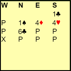 6 kløver er en ganske brukbar slem pga. dobbelton hjerter og kløvertilpasning hos nord. Av de 15 N/S-parene var det imidlertid kun tre som meldte 6 kløver.