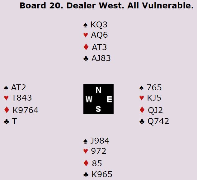 I dameklassen hvor Norge slo Australia ble det uavgjort med +630 i 3NT.