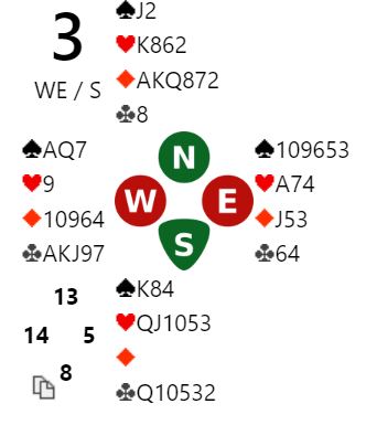 Av de tolv lagene vant syv av dem 4H. Fire N/S-par gikk bet i utgangen, og ved ett bord ble det spilt 3 spar Ø/V med en bet.