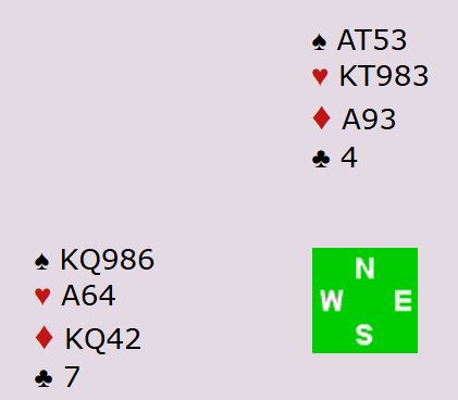 Hvis vest altså tar for hjerter ess med det samme og spiller ruterdamen trumfer syd. Så spilles hjerter til kongen og hjerter til stjeling, og bordet har to godspilte hjerterstikk med inntak på sparesset. Syds spartaper forsvinner, og en knallhard 6 kløver fyker hjem.