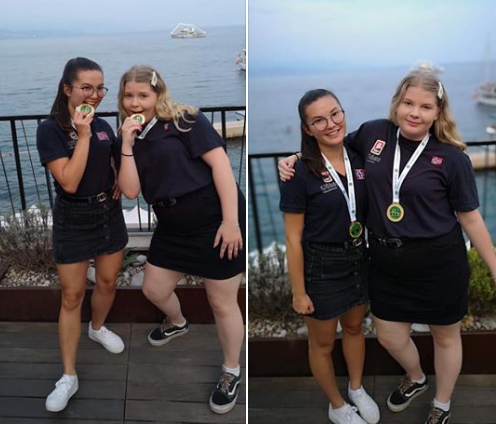 Glade gulljenter etter bragden i Kroatia, Thea Lucia tv. og Ida Marie