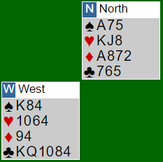 Umiddelbart ser det for syd ut som om at her er det såkalte Bath-Coup på gang. For hvis han vinner første stikk med kløver ess og øst kommer inn på ruter konge spiller han kløver gjennom, og Ø/V får fire stikk i den fargen - en bet. Og lasjerer syd i første stikk (Bath Coup) kan riktignok ikke vest fortsette i kløver, men slik N/S sine kort er sparskift en trussel for spillefører. Hvis vest får for kløver konge (liten fra syd) må han skifte til noe! Finner han sparskiftet blir det bet. Så Bath-Coup funker ikke her. Men å vinne med kløver ess funker altså heller ikke. Hadde ruter konge vært i saks ville det vært enkelt, men spillefører bør planlegge ut fra at ruterfinessen ryker. Da må han forsikre seg om at Ø/V ikke får fire kløverstikk, men han må også forsøke å unngå sparskift. Syd må gjøre det "trygt" for vest å fortsette i kløver! Derfor denne «forfalskningen» av sitsen får å få ny kløver i andre stikk, noe som etter det som skjer i første stikk ser så riktig ut fra vest sin synsvinkel ("ingen legger vel knekten under kongen med A-J-2?"). Hvis kløver hadde vært fordelt 4-3 hos motparten ville øst hatt en kløver til, men forsvaret ville da fått kun ett stikk i ruter og tre i kløver.