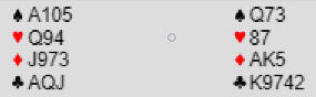 På den annen side, om syd har AK-femte i hjerter og vest legger nieren, vinner nord med tier eller knekt og de tar fem hjerterstikk selv om hjerter dame tredje var en sikker stopper - med åpne kort. Syd er en god spiller og kjenner igjen dette problemet, så han spiller nok liten andre gangen også om det sitter slik: