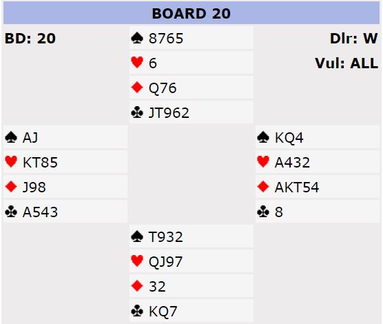 Det ble altså hjemgang i doblet kontrakt på fem-trinnet i begge retninger, 17 IMP til BAK. Men det hjalp ikke, kampen ble tapt med 1 IMP likevel.