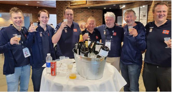 Gratulerer med gull i åpen klasse til Tor Eivind Grude, Geir Helgemo, Boye Brogeland, Christian Bakke, Allan Livgård, Terje Aa og Tolle Stabell som er lagets Non Playing Captain og coach Sten Bjertnes.
