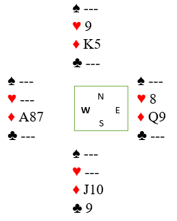 Nå visste spillefører at nord hadde en hjerterstopper, og sjansen var at han også hadde ruter konge. I diagramsituasjonen fridde hun seg med hjerter 8. Nord kom inn og måtte spille unna ruter konge til kombinert saks slik at damen ga stikk og det ble ni stikk. Pent!