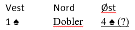 Makkeren åpnet med 1 spar og nestemann doblet. Spilleren som tok opp spillet på Facebook meldte 4 spar.