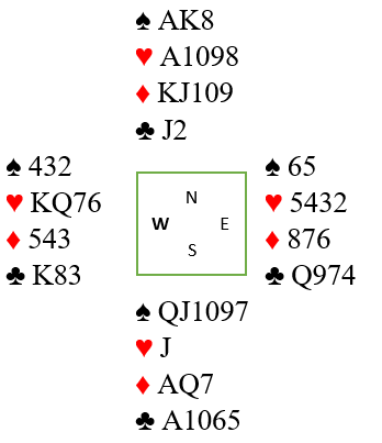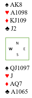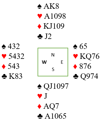 Nords 10-9-8 i hjerter har vokst og på en måte blitt de nye K-Q-J hvor simpelthen esset kan presses ut. Og i dette tilfellet mot trumf siden syd hadde singel hjerter.