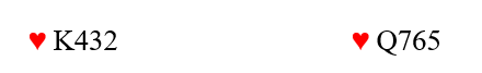 Det er altså hjerterutspillet som gir denne muligheten for flere ekstrastikk i fargen. Det kunne skjedd også med liten hjerter ut. Ø/V sin hjerterfarge kunne for eksempel sett slik ut: