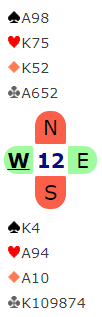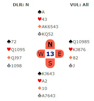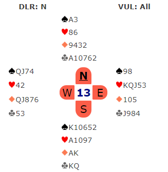Det er imidlertid litt tilfeldig at det ble galt denne gangen som var fordi 3 grand spilt av syd var veldig vanskelig å vinne etter ruterutspill fra vest. Da det ble en bet ved det bordet vant lag TURBO 12 IMP.
