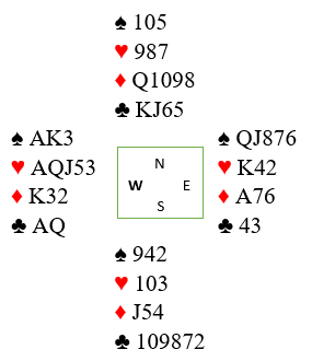Å ta de ni stikkene som er der i hjerterkontrakt bør ikke være for vanskelig om spillefører bare tenker noen sekunder før han setter i gang. Ruteren ser uskylig ut, to stikk liksom, men man må huske å tenke på hvor det er fint å ha den andre honnøren når en av dem blir revet bort med det samme. Og det er hos vest det er fint å ha den ene gjenværende ruterhonnøren.