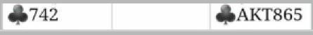 Syv par var i 6 spar vant den. Syv av dem fikk lett spill da det ikke kom ruter ut, så kun to av dem fikk prøven i kløverfargen fordi N/S fikk med seg for ruter ess.
