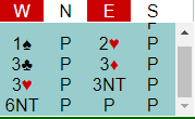 I damekampen i runde 2 mellom Finland og Danmark fant det finske Ø/V-paret enkelt 7 grand hvor det er tretten stikk fra topp, ingen farger må gi noe ekstra enn topphonnørene (3+3+4+3). De danske meldte imidlertid svakt etter at vest åpnet med 1 spar: