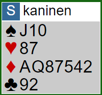 (Merk at beste spill i spar her er å spille spar 10. Du håper jo i dette tilfellet at vest IKKE dekker. Det er større sjanse for at vest ikke dekker spar 10 enn spar knekt om det kortet spilles i første sparrunde)