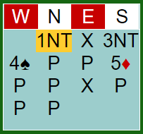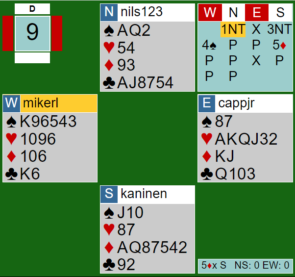 Siden sparfinessen gikk, trumffinessen gikk, og rutereren satt 2-2 stod 5 ruter doblet etter sparutspill fra vest.