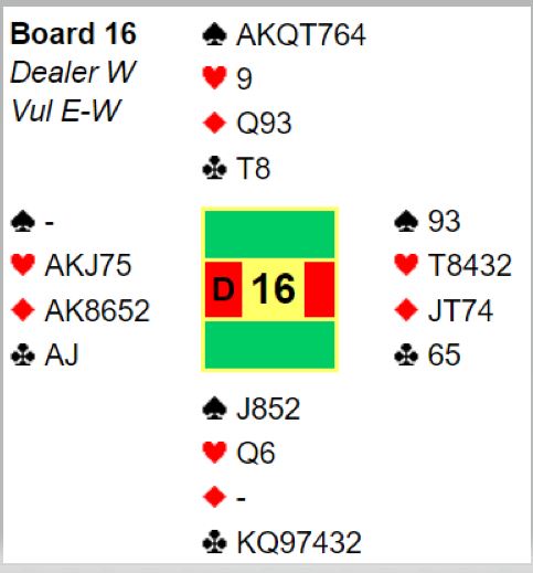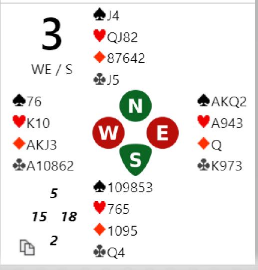 Fem av 16 N/S-par var i slem, tre av dem i ruterkontrakt hvor en ikke behøver å tape kløverstikk, fargen kan trumfes god. Ett par var i 7 ruter! Da ruterfinessen gikk bra og kløveren enkelt ble godspilt ble det en formidabel +2140 til notering ved det bordet.