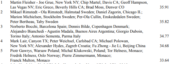 På resultatlisten fra finalen (50 par) finner vi foruten Brogeland Tor Helness på listen som nr. 22 sammen med Jessica Larsson fra Sverige.