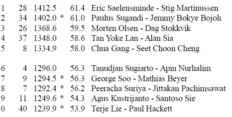 Best av de norske ble Arve Glomnes-Kristian Vik (Stryn BK) på 7.plass med 67%.