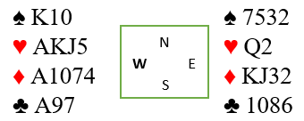 Om det kommer hjerterutspill er det ikke så bra, for da kan de ikke slippes inn i ruter. I så fall må ruter sitte 3-3, og spillefører må dessuten gjette om han skal ta sparfinesse, eller spille på at øst har K-Q i hjerter, eller eventuelt forsøke å få til et innspill mot vest.