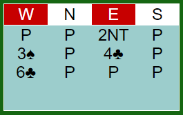 Øst skal altså spille 6 kløver. Hva ville du spilt ut?