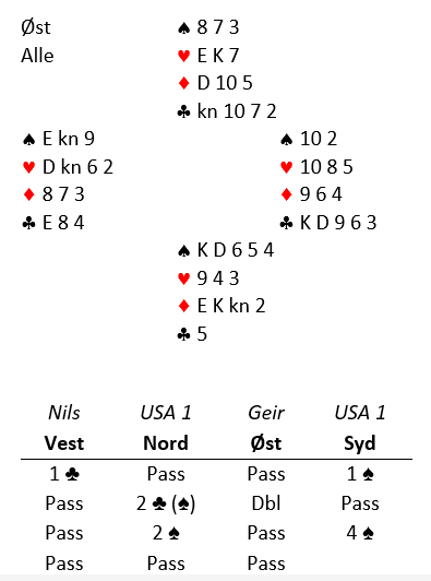 Dermed ble det en knallhard utgang som skulle spilles av Ann-Mari (nord). Øst spilte ut ruter knekt.