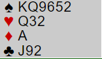 Spillefører behøver ikke mer enn fire sparstikk (kaster to hjerter). Hvis det sitter 3-2 eller knekten singel er alt greit.