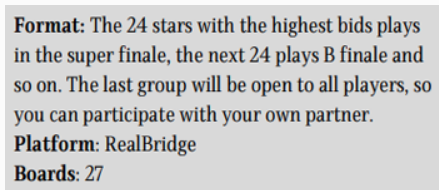 Selve auksjonsturneingen vil skje 2.januar på RealBridge. Der kan altså de som ønsker å støtte det viktige arbeidet med bridge for barn og unge kjøpe seg en kjent spiller som makker.