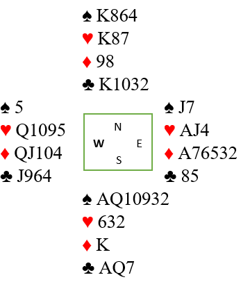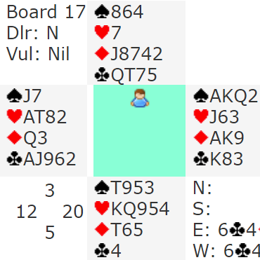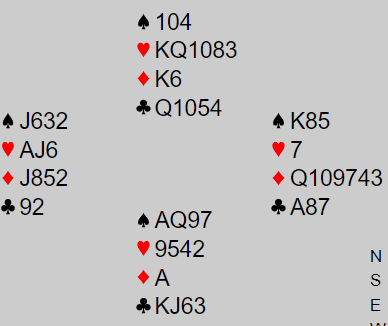 PS. En annen løsning Hegge nevnte når han valgte å spille spar i andre stikk er å legge liten på nords spar dame. Da er det også safe slik det her sitter. Men syd kunne hatt A-Q-J i spar, og i så fall kommer han inn og det ubehagelige kløverskiftet kommer fra syd. Derfor er nok beste plan å spille mer ruter i andre stikk.