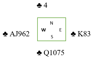 Poenget i spillet er at du har en måte å spille kløveren på som er 100% når det gjelder å vinne kontrakten. Som så ofte kan man ikke se blindt på en fargekombinasjon og tenke fargebehandling isolert sett, men se fargen i spillets kontekst.