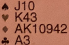 (Ved det andre bordet ble utgangen vunnet etter hjerterutspill fra syd til liten, knekten og damen. Dermed ble det 10 IMP til det norske parets lag.)