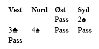 Er vests pass på syds 4 spar krav? Ja, det vil nok mange hevde, vest har jo meldt 3NT så å la syd spille 4 spar udoblet virker vel ulogisk nå?